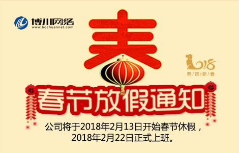 博川網(wǎng)絡(luò)2018年春節(jié)放假通知2018-02-13 11:40